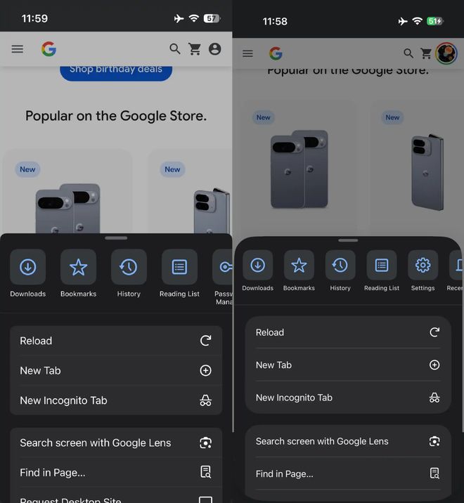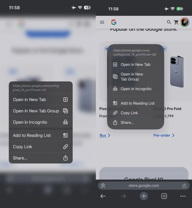 與安卓版相比,iOS 版本的界面和交互方式存在明顯差異(例如 Chrome 在 2023 年 10 月新增底部地址欄,而安卓版則在 2025 年 7 月才引入),并且擁有獨特的標簽頁網格視圖和底部彈出菜單。