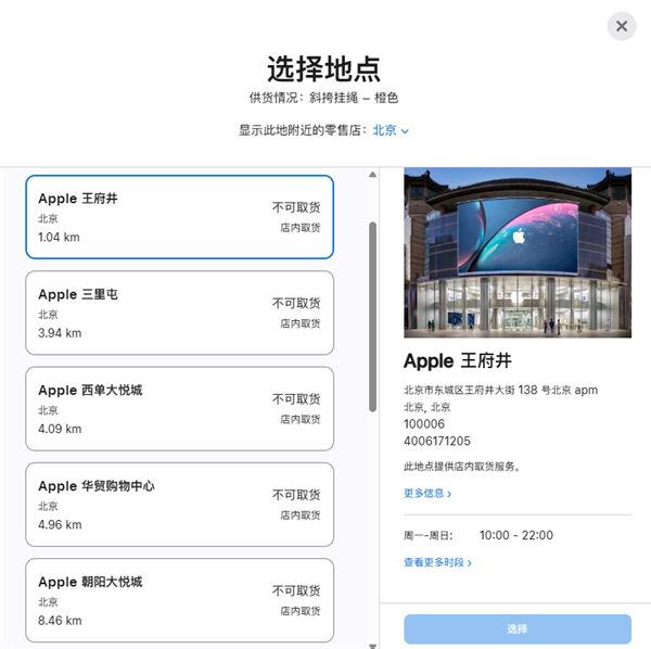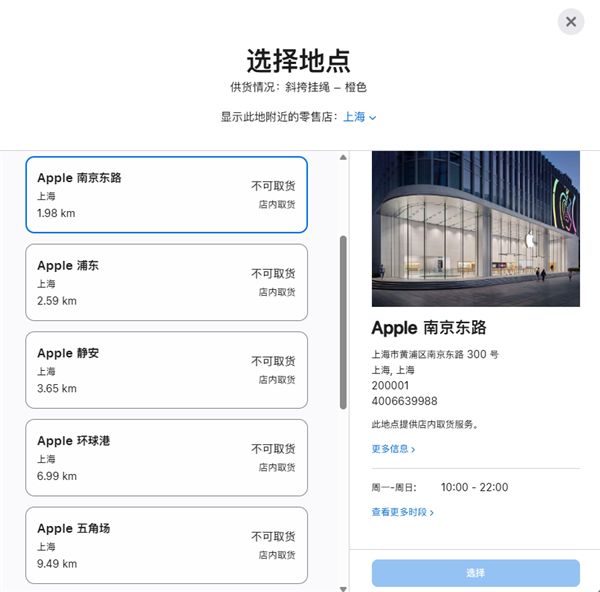 蘋果中國官網顯示,目前,橙色斜挎掛繩在國內多地Apple Store零售店已為無貨狀態,預計送貨時間為10月29日—11月5日。