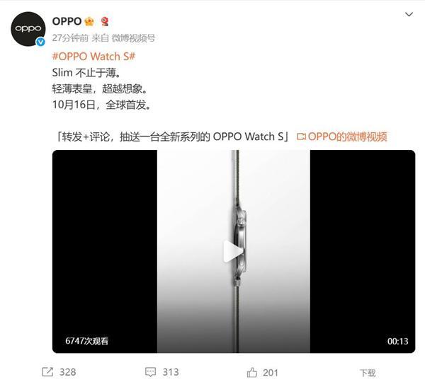 9月24日消息,OPPO宣布將于10月16日推出OPPO Watch S智能手表,官方稱之為"輕薄表皇"。