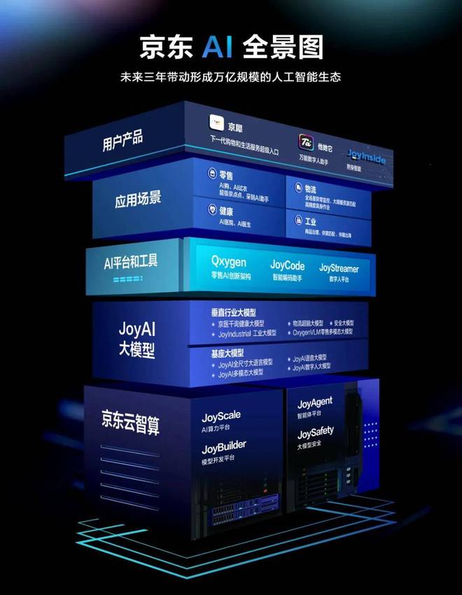 而根據會上京東發布的 AI 全景圖來看,以及圍繞升級后的大模型品牌 JoyAI,正式發布的三大全新 AI 產品、四大場景深度 AI 應用,以及多個技術平臺的「秀肌肉」式操作,更是印證這一事實:在落地應用成為大模型主流敘事的當下,在其他玩家還在進行場景與路徑的摸索中,AI 已在京東供應鏈全鏈路、全場景應用中「結出了果」。