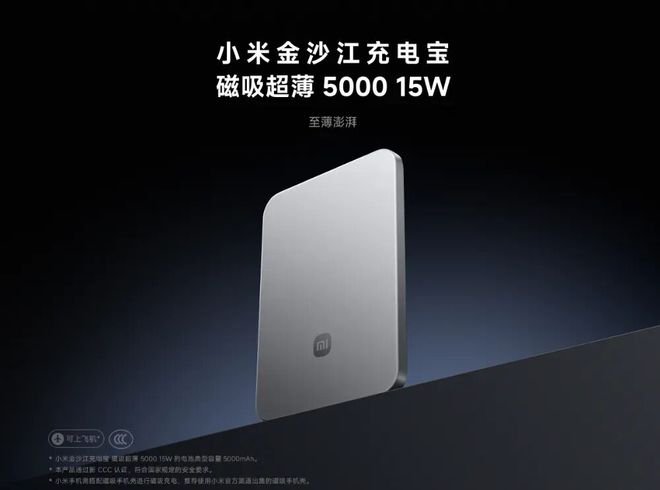 小米金沙江充電寶擁有5000mAh電量,鋁金屬外殼,厚度僅6mm,重量為98g,支持15W磁吸無線充電、22.5W有線充電,還支持有線無線同時充,支持3C可上飛機,售價299元。