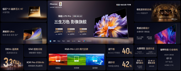 作為RGB-Mini LED技術(shù)的開創(chuàng)者和持續(xù)引領(lǐng)者,海信建立并發(fā)布多基色顯示分級(jí)分類標(biāo)準(zhǔn),定義RGB-Mini LED的核心標(biāo)配是RGB獨(dú)立發(fā)光芯片+光色同控獨(dú)立畫質(zhì)芯片。同期發(fā)布的還有高端Mini LED電視E7Q、貼貼壁畫電視A7Q及3A原畫顯示器G7 Ultra。