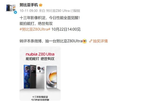 不久前,努比亞手機官方宣布,努比亞Z80 Ultra將于10月22日14:00正式發布,號稱“能拍能打,絕世有雙”。