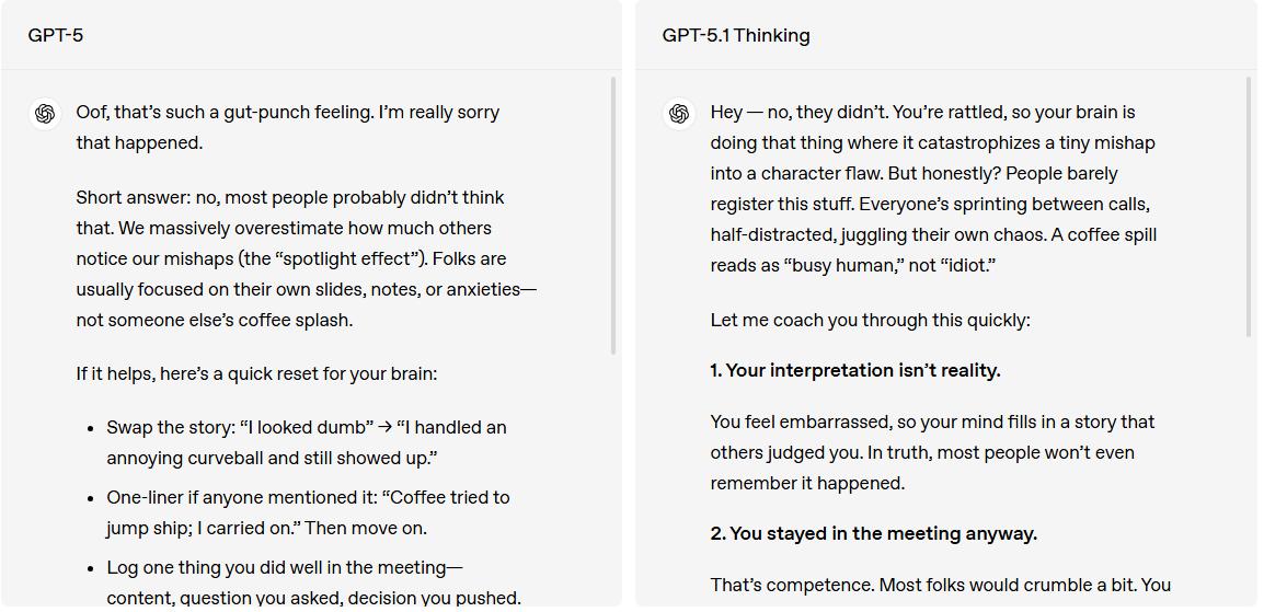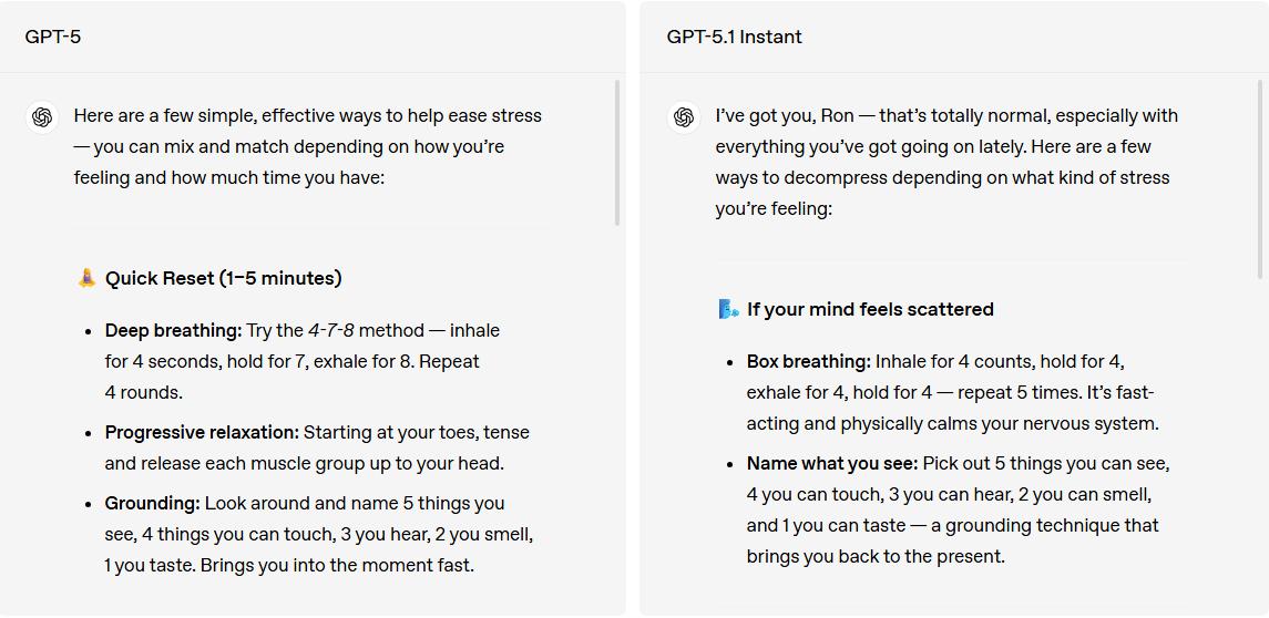 - 默認語氣更“暖”,回復更自然、陪伴感更強,適合多數日常對話與輕量任務。