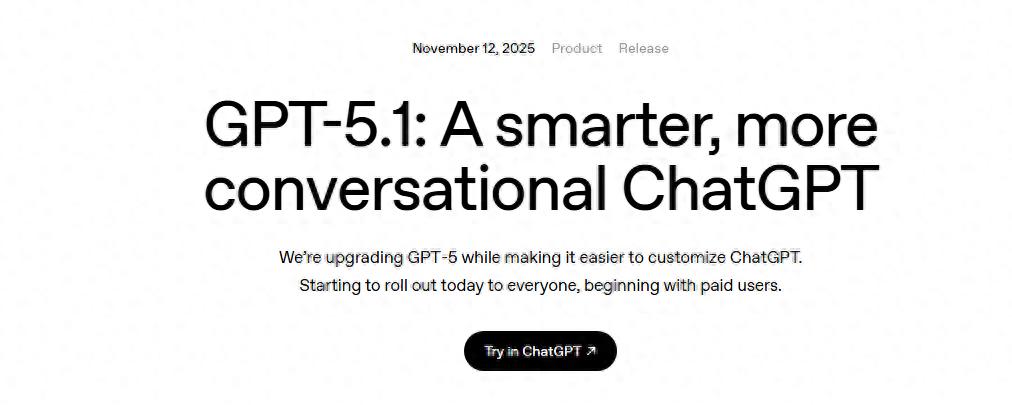 11月12日,OpenAI正式發布GPT?5.1系列,包含兩款核心模型:GPT?5.1 Instant 與 GPT?5.1 Thinking,并同步推出更直觀的對話“個性化風格”控制。官方強調,這次迭代不僅提升了模型智能與推理表現,也大幅優化了溝通體驗與可定制性,正在向“更像你、更懂你”的AI邁進。