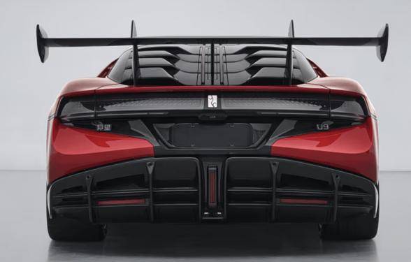 外觀方面,U9X前機艙蓋采用了雙貫通設計,并配備更大的前唇擾流板,兩側還配有向下彎折的端板,整體布局將會增加車頭下壓力。車身尺寸長寬高達到了4991/2029/1351毫米,軸距是2900毫米。