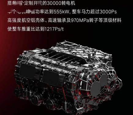 動力方面,新車采用全域1200V超高壓平臺,配備四電機系統,系統總功率達到了2220千瓦,推重比達1217馬力/噸。新車還配備全新的賽道級刀片電池,通過優化電芯、降低內阻,配合全新的雙層冷卻結構,實現了30C的超高放電倍率。